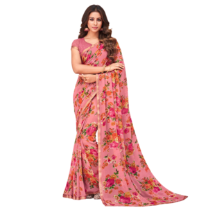 Floral Printed Georgette Saree – Pink